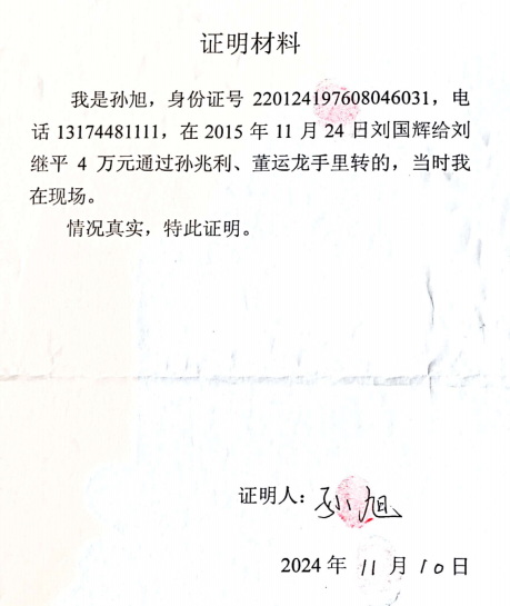 崔有在举报信中还称:原岔路口镇派出所所长、现任德惠市振兴派出所所长的刘继平同样涉嫌受贿办"金钱案"。2015年11月,刘继平向一起打架事件当事人刘小龙的父亲刘国辉索要4万元"摆平费",收钱后便不再追究相关人员责任,此事有镇政府工作人员孙某提供佐证。2018年,刘继平两次收受李玉江(外号李四)共计8000元现金及1000斤大米后,仍以抓赌为名多次骚扰其经营的超市,村书记王占臣出面理论时遭其非法扣押一夜,最终经镇党委书记协调才得以释放,相关通话录音及当事人均可证实此事。